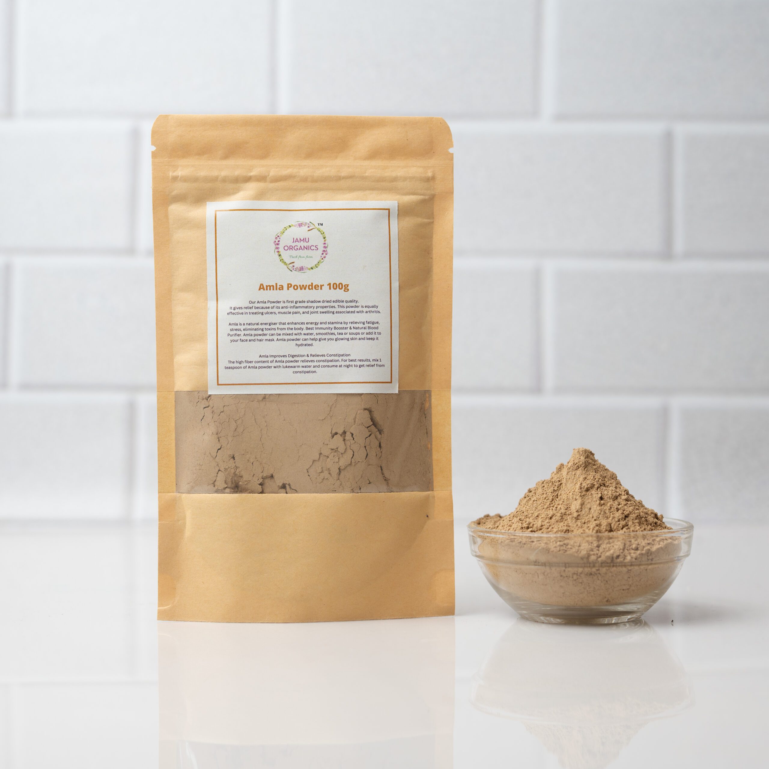 | Content | Our Amla Powder is first grade shadow dried edible quality Powder. Antioxidant rich super food amla rich in vitamin C. 1 spoon of amla powder can do wonders to our skin and hair health.