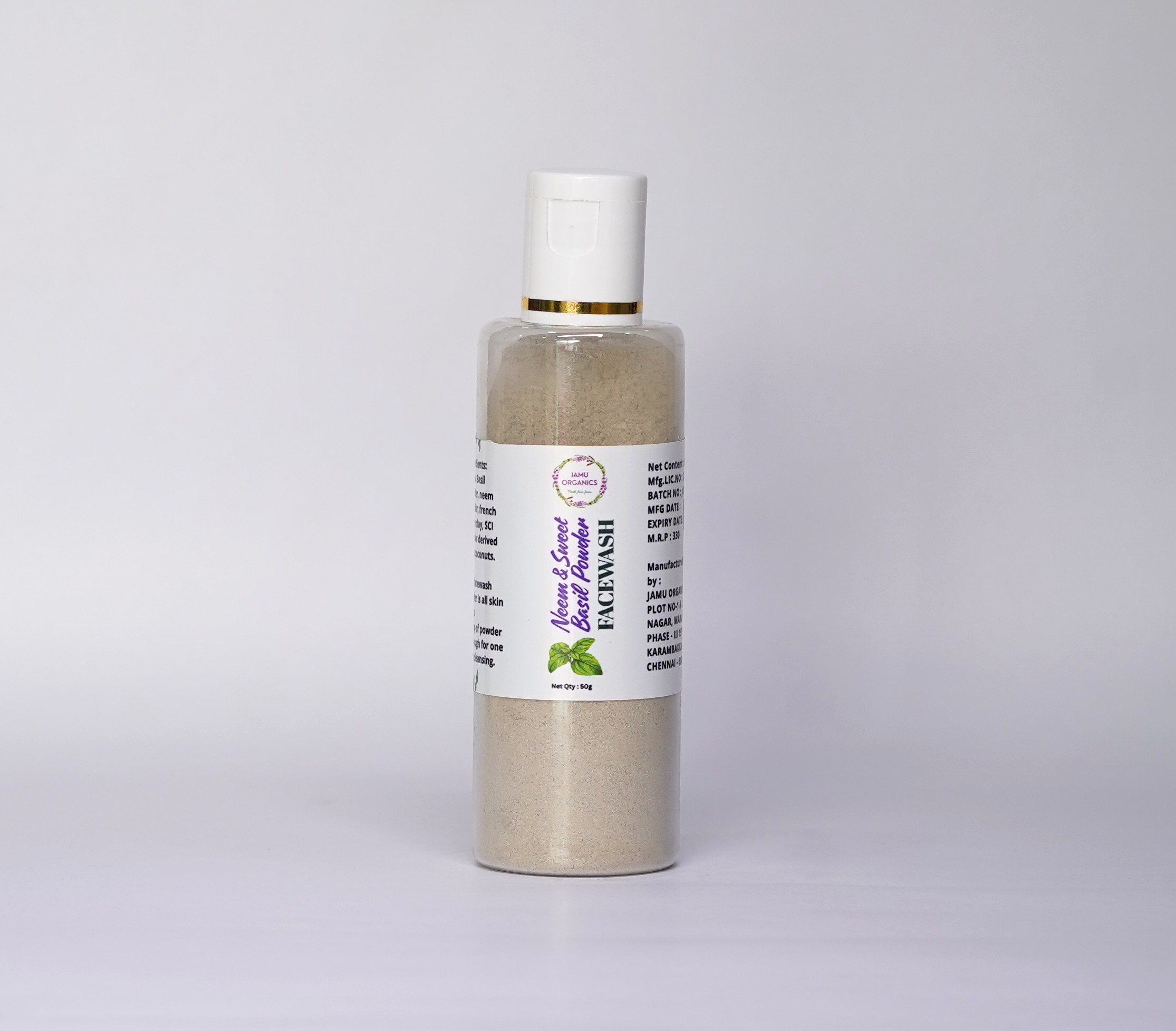 Why choose our Neem N Sweet Basil Facewash? Our facewash works to cleanse deeply without over-drying, leaving your skin feeling clean, calm, and refreshed.
