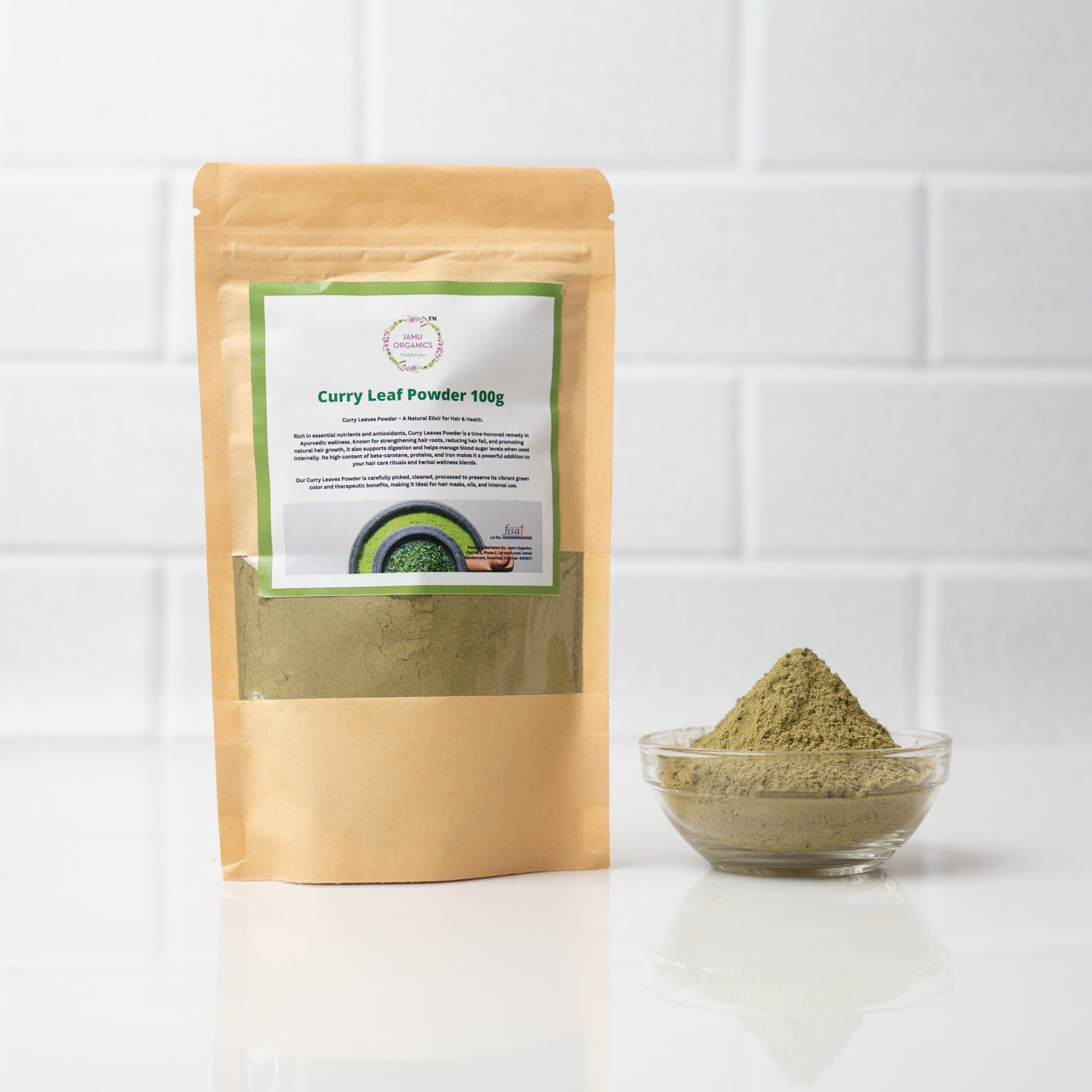 Curry Leaves Powder is a natural, nutrient-rich powder made from dried curry leaves. Known for its powerful antioxidant and hair-nourishing properties, it supports healthy hair growth, reduces hair fall, and helps maintain scalp health. It’s also packed with iron, vitamins A, B, C, and E, making it great for skin and overall wellness when used in skincare or as a supplement.