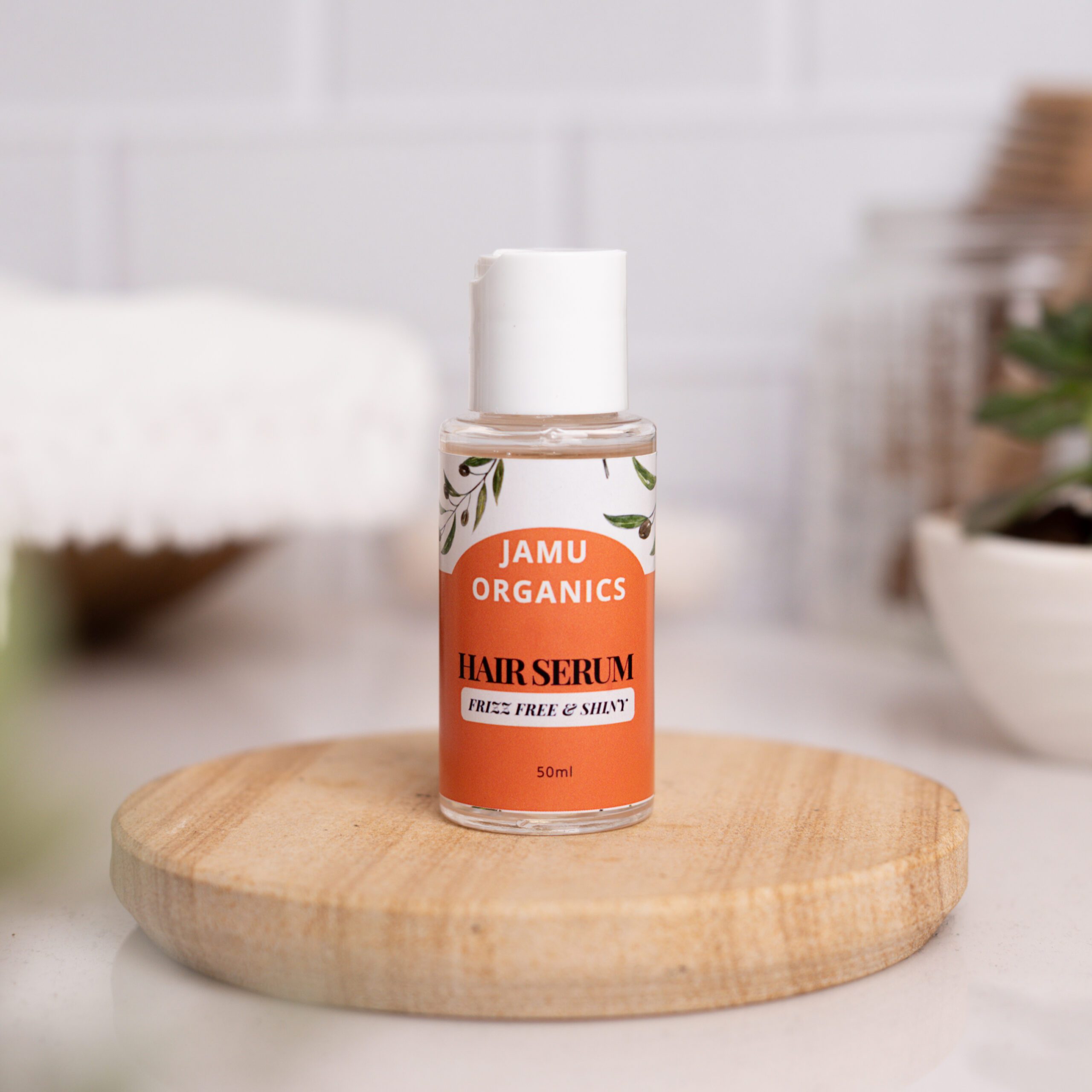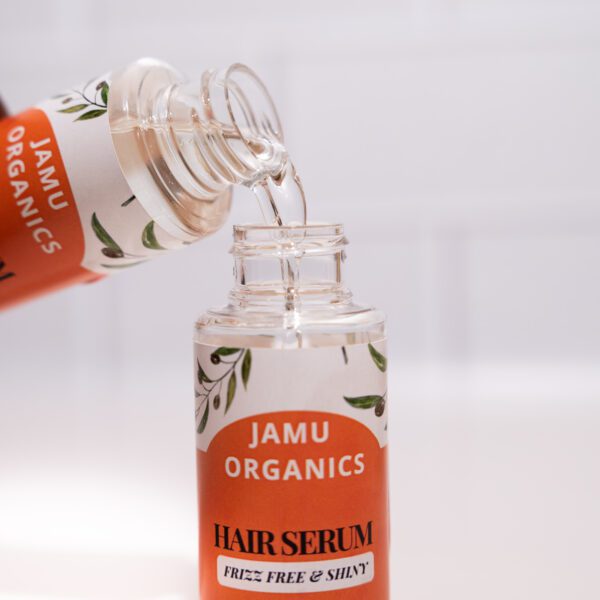 Take Jamu Organics Hair Serum onto your palm. Rub smooth onto wet or dry hair. Works best on wet hair. For shiny, frizz-free, manageable, gorgeous hair strands. 1-2 pumps are ideal for mid-length hair.